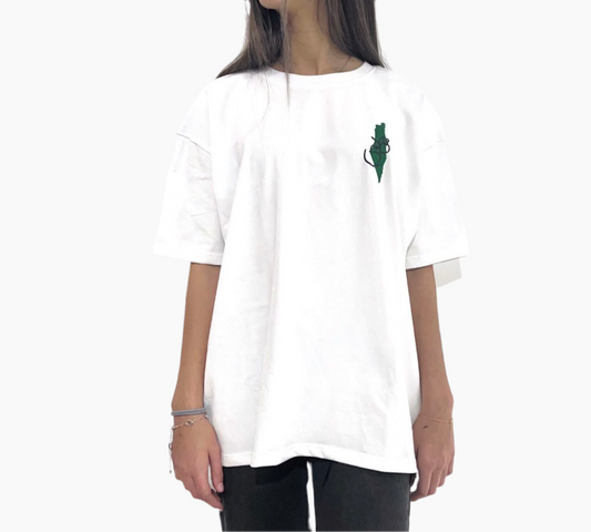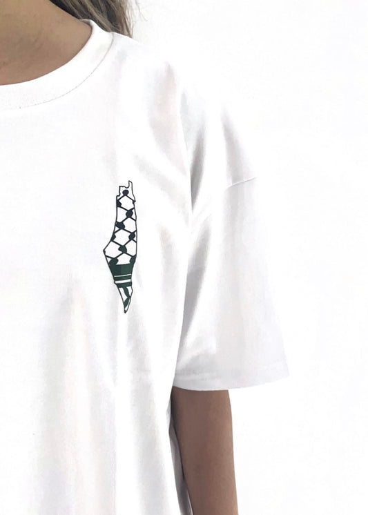 Oversized Fit Palestine Kuffiyeh Olive vine T-Shirt -White